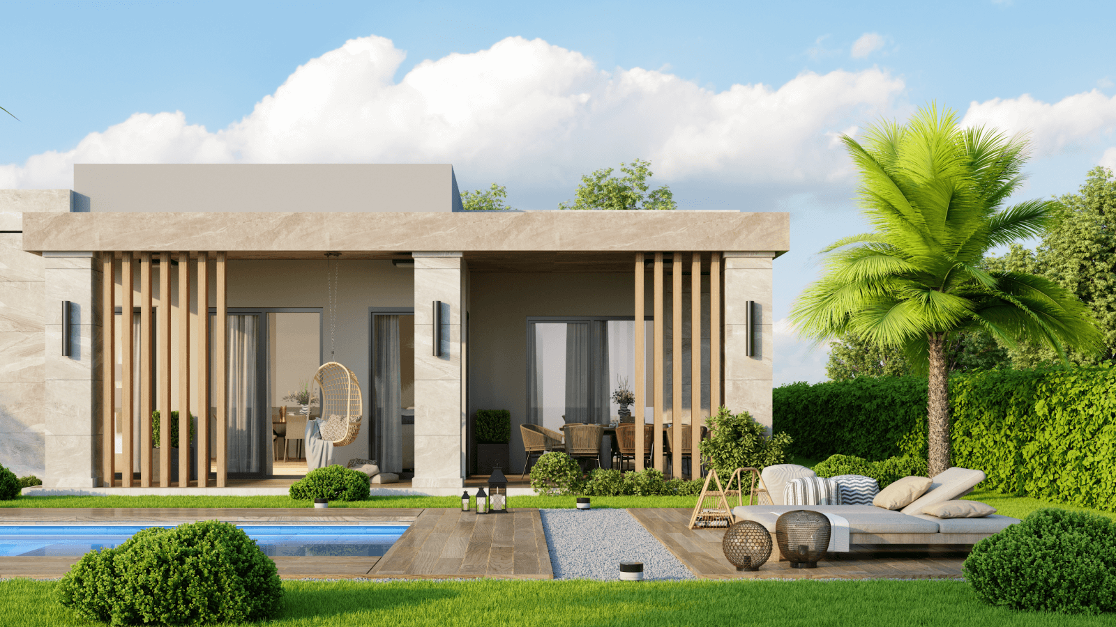 aynı çerçevede buluşturan seçkin tek katlı bir villa yaşamı.