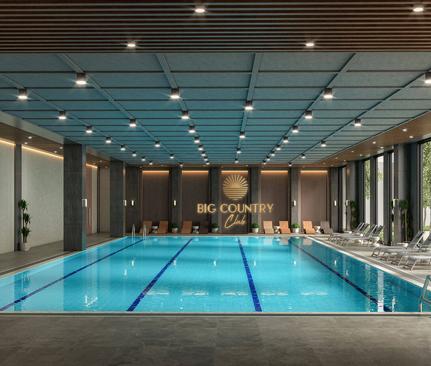 Big Country Club'ta ise tenis kortları, basketbol sahası, futbol sahası, yarı olimpik kapalı yüzme havuzu, çocuk oyun alanları, çalışma alanları ve coffee lounge alanıyla daha birçok ayrıcalıklı imkândan da faydalanabileceksiniz.