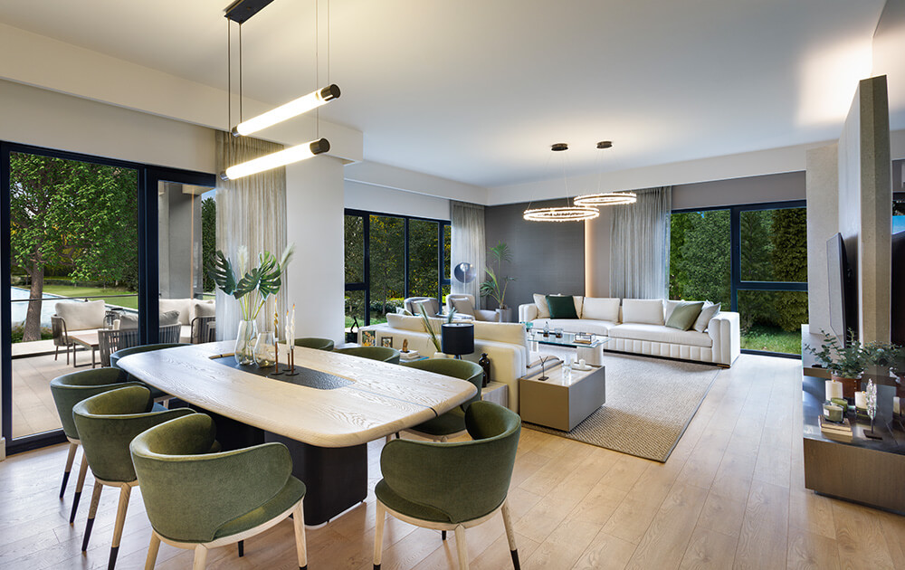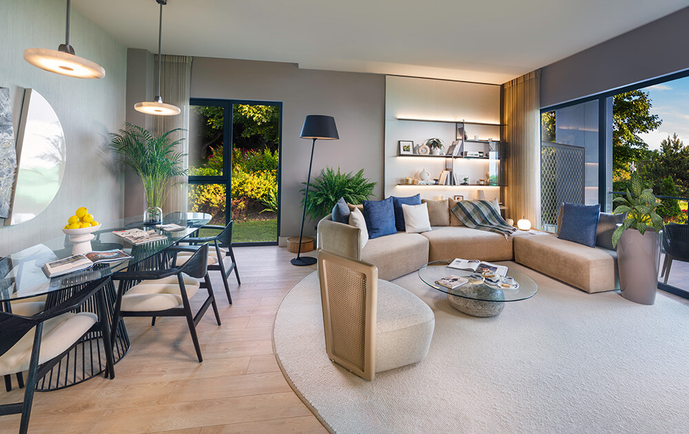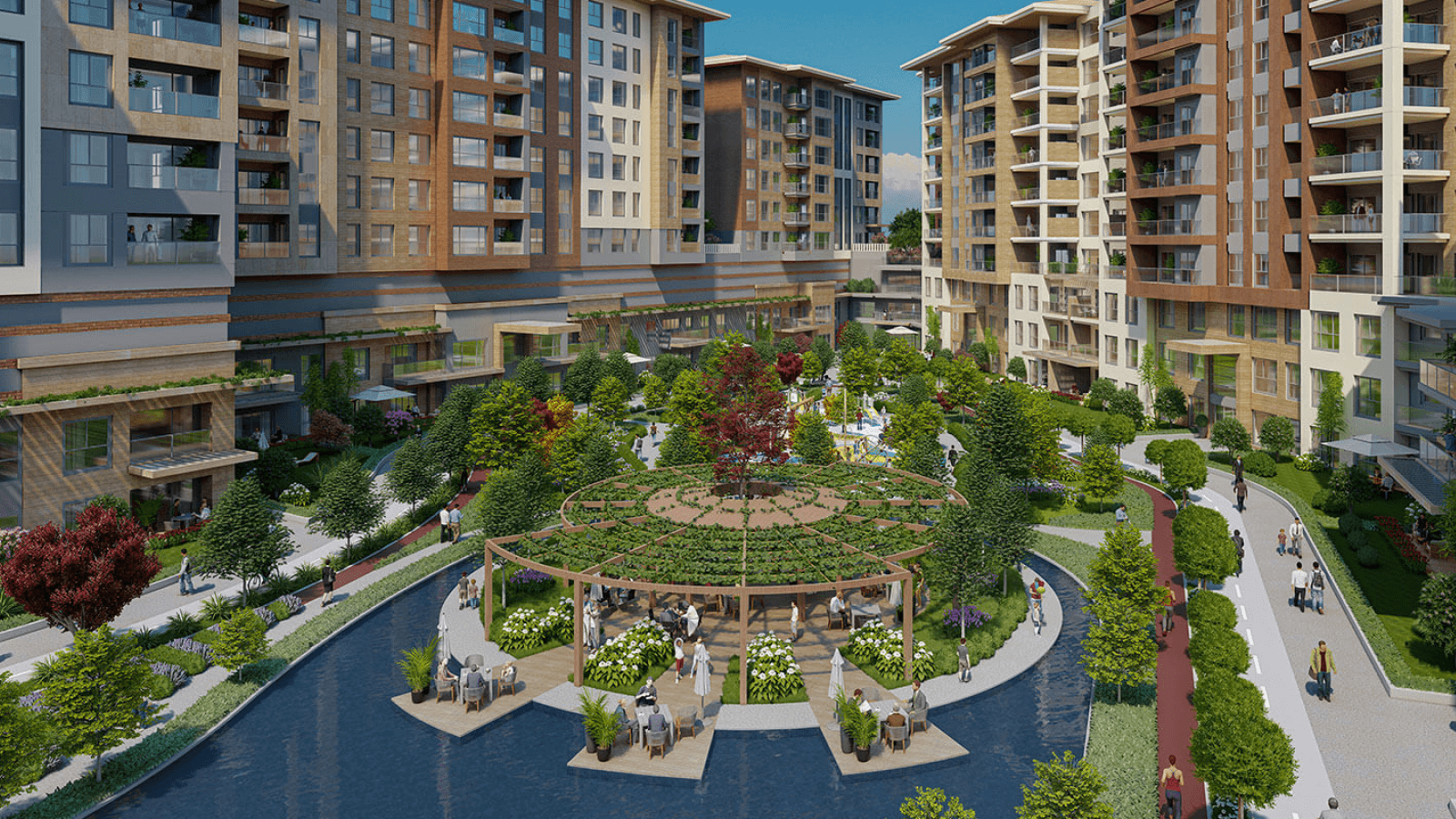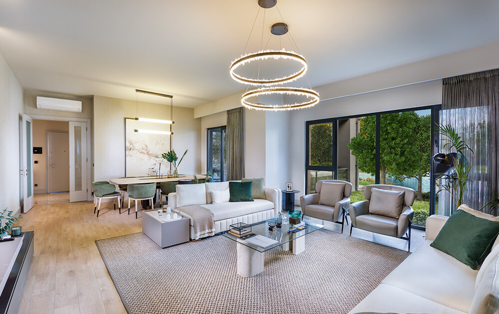 Projenin merkezinde yer alan gölet ve geniş peyzaj alanları, yalnızca estetik bir unsur olmanın ötesine geçerek yaşamın doğal bir parçası haline gelir. Yeşil dokuyla çevrelenen açık alanlar, yürüyüşten dinlenmeye kadar günün farklı anlarına eşlik eden huzurlu bir sahne sunarken, doğayla kurulan bu güçlü bağ yaşam kalitesini belirgin şekilde artırır.