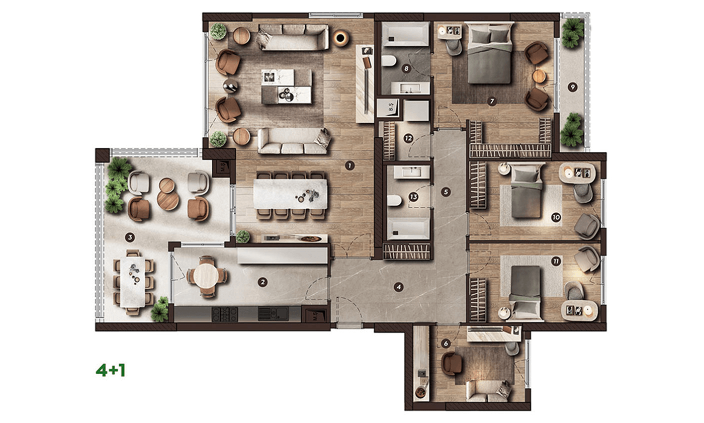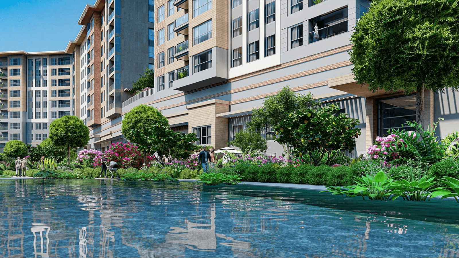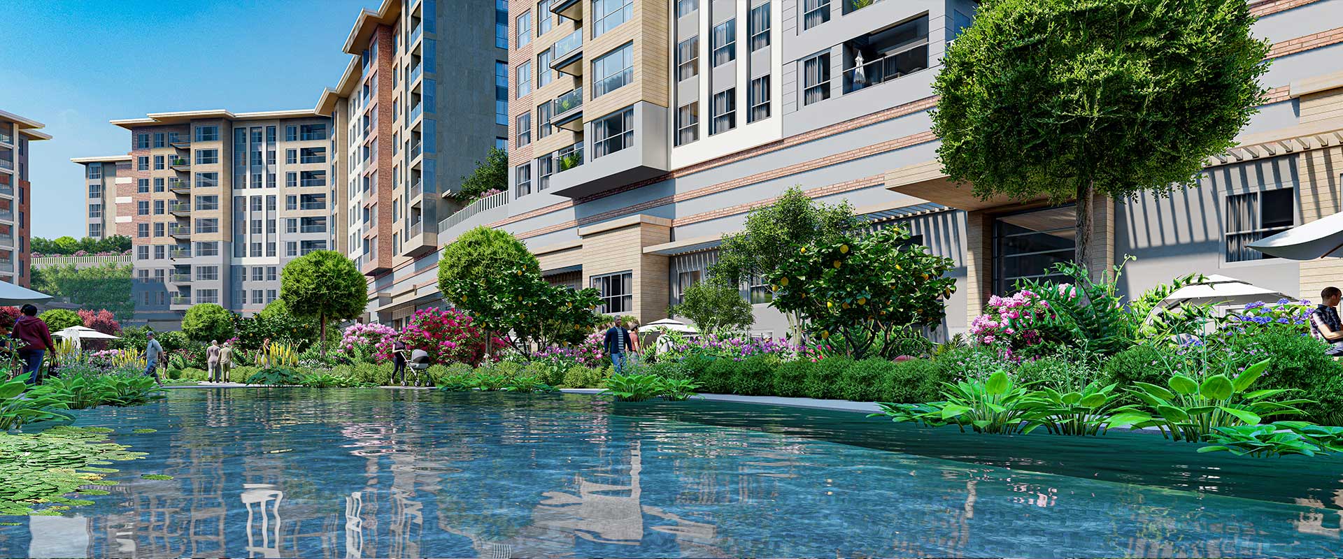 Projenin merkezinde yer alan gölet ve geniş peyzaj alanları, yalnızca estetik bir unsur olmanın ötesine geçerek yaşamın doğal bir parçası haline gelir. Yeşil dokuyla çevrelenen açık alanlar, yürüyüşten dinlenmeye kadar günün farklı anlarına eşlik eden huzurlu bir sahne sunarken, doğayla kurulan bu güçlü bağ yaşam kalitesini belirgin şekilde artırır.