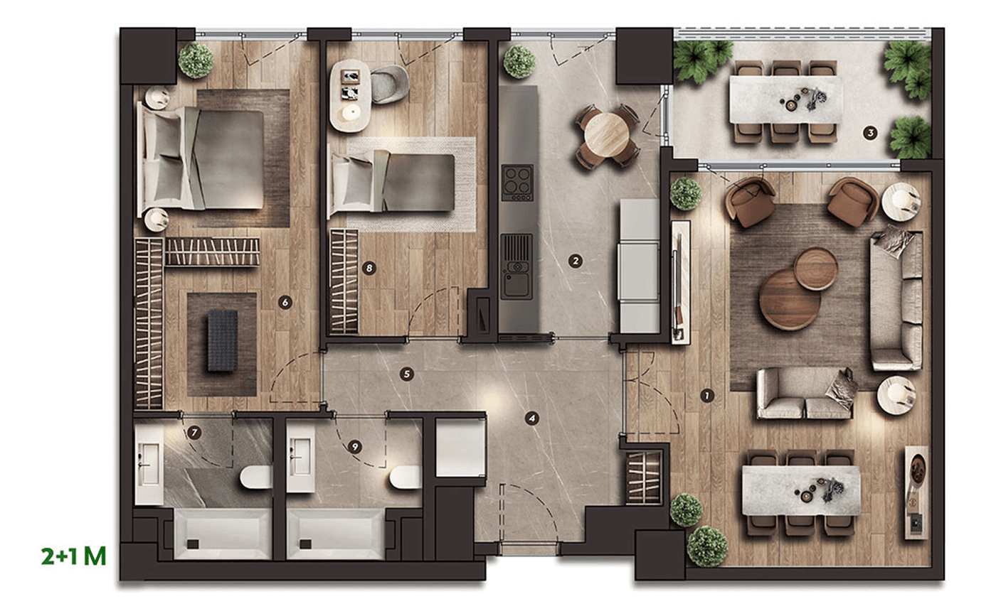 Doğayla iç içe peyzaj alanları,modern mimarisi ve zengin sosyal imkanlarıyla sakinlerine ferah,huzurlu ve dengeli bir yaşam sunan nitelikli konut projesi.