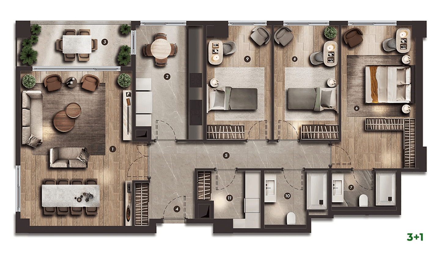 Site içerisinde konumlanan Baş Çarşı, günlük ihtiyaçlara hızlı ve pratik erişim sağlarken yaşamın doğal akışını kesintiye uğratmadan devam ettirir. Sosyal alanlar, spor imkanları ve dinlenme noktalarıyla desteklenen proje, yalnızca bir konut değil, günün her anına uyum sağlayan bütüncül bir yaşam deneyimi sunar.