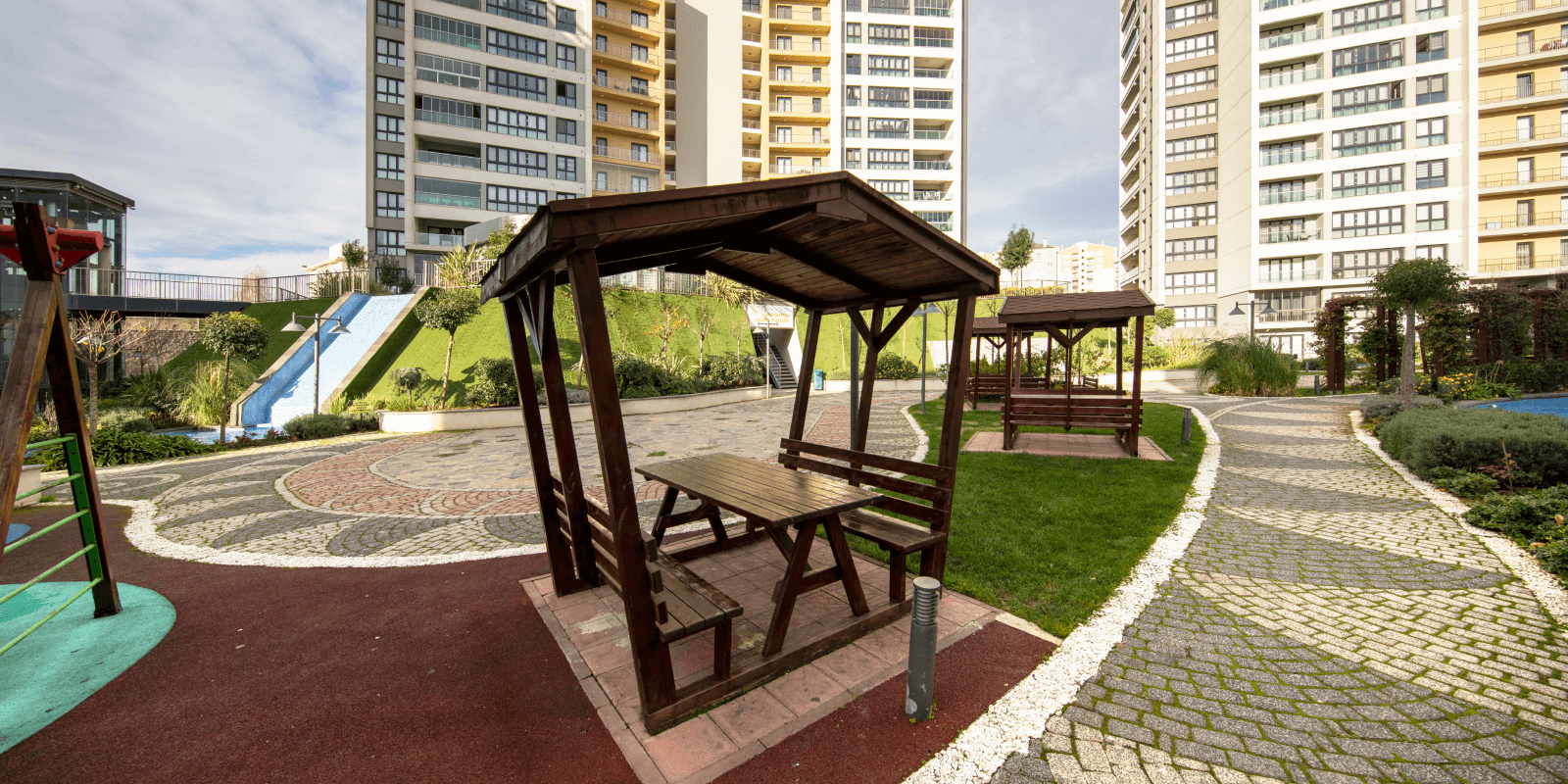 Kapalı yüzme havuzları, spor salonları, hamam, sauna ve buhar odası gibi sosyal alanların yanı sıra cadde dükkanları günlük ihtiyaçlara kolay erişim sağlar.